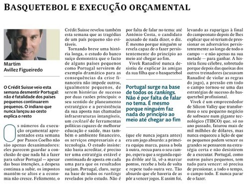 O seu texto no último Expresso tem o basquetebol no título e chamou-me à atenção. Vou directo à narrativa, mas publico a coisa na íntegra. Para poupar os leitores divulgo a parte em causa com sublinhado e tudo.