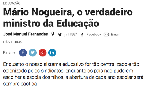 O autor da prosa indicada é recorrente. Foi um fervoroso Lurditas D´Oiro com a mesma argumentação anti-sindical e tornou-se um anti-Lurdes quando percebeu que os professores não eram comandados, que tinham a força da razão e que até rebocavam os sindicatos. Foi tarde. As pessoas da cassete já tinham apoiado quanto baste o plano inclinado da escola pública e dos seus profissionais.