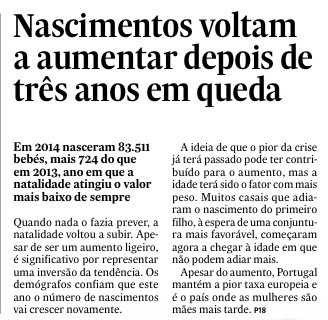 Aumentou a natalidade. Perante a pergunta, "devemos reabrir escolas e contratar professores?", o poder vigente responderá que o aumento só se reflectirá lá para 2020. É risível pensar que nos últimos anos a quebra da natalidade serviu para cortes imediatos e a eito.