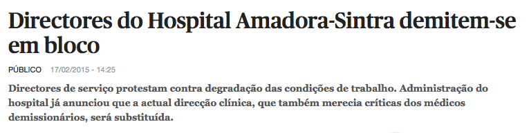 O sistema de saúde está em estado-de-falhas-graves-diárias. É uma espécie de estado de sítio. Ontem foram os directores do Hospital Amadora-Sintra que se demitiram.