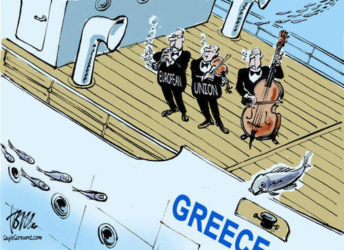 Os revisionismos são agora mais difíceis. A Grécia era um país do sólido centrão europeu, mas com o programa referido, o arco governativo esfumou-se, os "radicais" diversos entraram no parlamento, os excluídos passaram a grupo maioritário, o PIB caiu acima dos 20%, os inúmeros desenhos económicos falharam e olhamos para o presidente português e revemos os mentores que mais parecem os últimos inconscientes da tragédia do Titanic. Alguém que acorde o senhor, que lhe mude a receita ultraliberal e que lhe segrede que o mundo pula e avança. Quanto ao PS, percebe-se a desorientação e o compasso de espera com a ideia dos prognósticos no fim do jogo.
