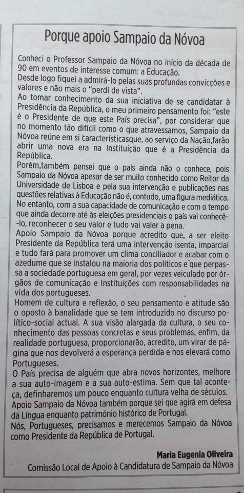 Já foram publicados, na Gazeta das Caldas, três textos de apoio à candidatura de Sampaio da Nóvoa à Presidência da República.