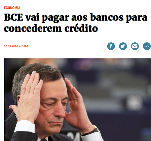 Draghi afirma "que entregar dinheiro directamente às pessoas é um conceito muito interessante”. Quem diria. O processo dá que pensar, realmente: os bancos recebem juros para pedir emprestado. Espera-se que o dinheiro chegue mesmo à economia e que não sirva apenas a deficitária contabilidade bancária.