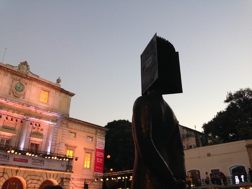 A espera implicou observar em detalhe, e com tempo, a estátua de Pessoa com cabeça de livro.