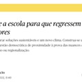 Aliás, e como escreve Steiner na página 44, "outras culturas e comunidades fizeram descobertas científicas e intelectuais. Mas só na Grécia Antiga se desenvolveu a busca da teoria, do pensamento especulativo desinteressado sob a luz de possibilidades infinitas. A dignidade do Homo sapiens reside exactamente nisso: compreender no que consiste a sabedoria, procurar o conhecimento desinteressado, criar beleza." É precisamente essa a tendência da perda determinante nas nossas escolas. A obsessão com o individualismo e com o utilitarismo eliminou o contraditório e o espaço livre das ideias assente nos três vértices da intemporal e fundadora geometria da escola: professores, alunos e conhecimentos. Que se recomece.
