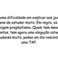 Há alguma dificuldade em explicar aos jovens as vantagens de estudar muito. Em regra, os jovens exigem pragmatismo. Quem tem menos argumentos, tem agora uma alegação categórica: se estudares muito, podes um dia rescindir com uma TAP.
