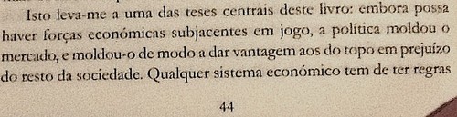 O crescimento económico não é a "maré enchente que subirá todos os barcos" porque a riqueza acumulada numa minoria não é taxada, nem redistribuída, e acentua as desigualdades. Os governos não têm força para contrariar o neoliberalismo vigente; e há os que o promovem. A história da distribuição da riqueza é política. Não se reduz a mecanismos puramente económicos. Lê-se em dois clássicos: "Riqueza das Nações" de Adam Smith e "O capital no século XXI" de Thomas Piketti. A economia não é independente da filosofia moral e política e tem na actualidade uma agravante: "Quanto mais os mercados invadem esferas não económicas da vida, mais se vêem enredados em questões morais.(...)".